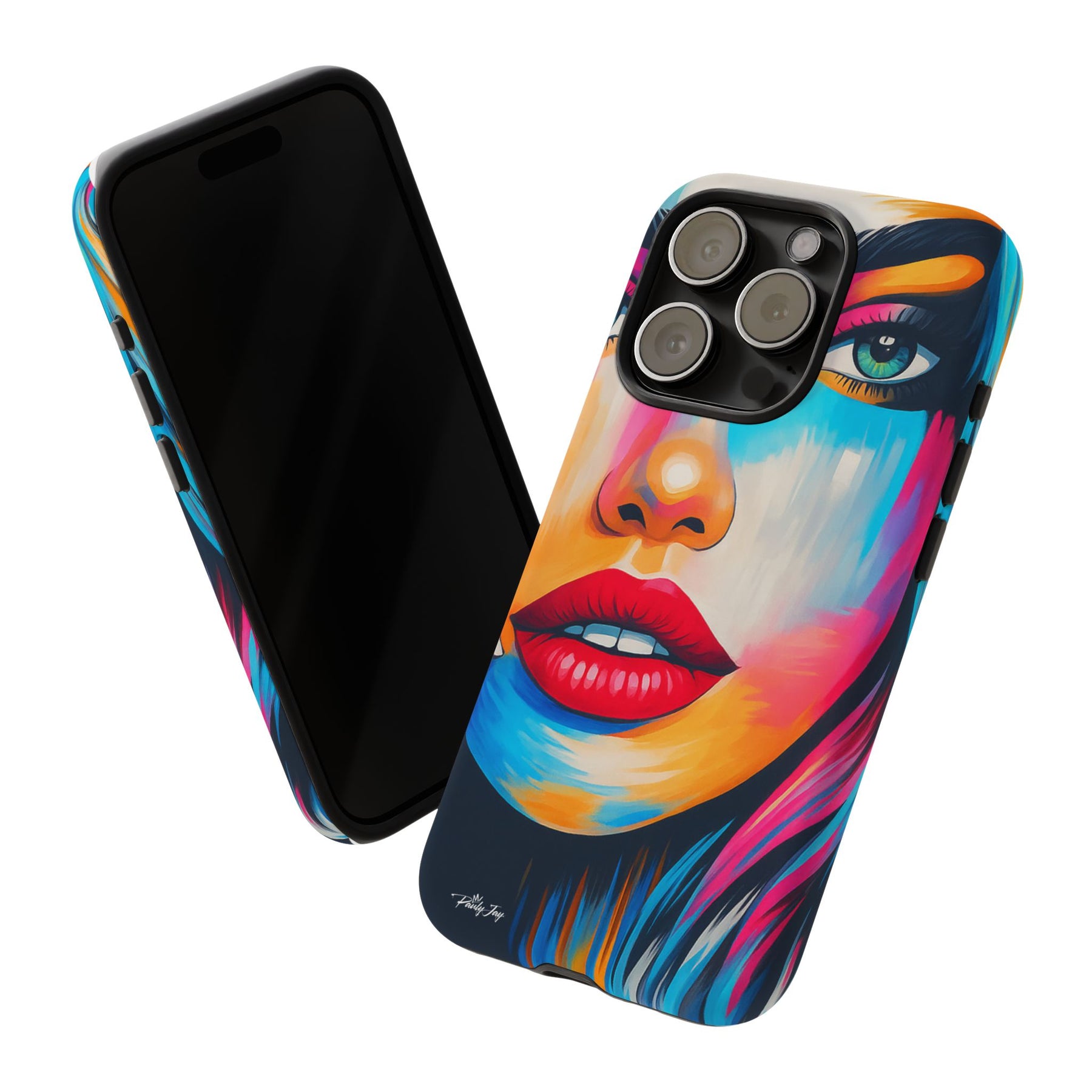 This Art Edition of the Perfectly Unhinged case puts the full portrait front and center — no text, no distractions, just Pauly Jay’s signature style in all its chaos and detail.